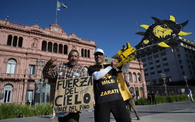 Apoiadores de Javier Milei em frente à Casa Rosada, em Buenos Aires, em 10 de dezembro de 2024JUAN MABROMATA JUAN