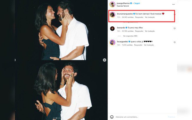 Bruna Marquezine reage ao fim de semana com João GuilhermeInstagram/@joaoguilherme Bruna Marquezine quebrou o silêncio e comentou, pela primeira vez,