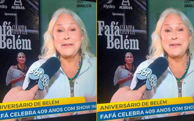Matéria do SBT sobre aniversário de Belém, com Fafá de BelémReprodução SBT/ Instagram @vireijornalista Uma confusão na chamada de uma