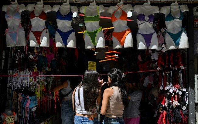 Mulheres olham roupas em uma loja em Buenos Aires, em 13 de fevereiro de 2025LUIS ROBAYO LUIS ROBAYO A inflação