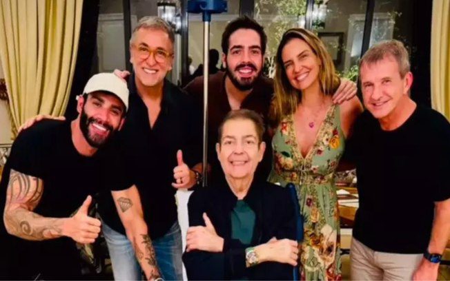 O filho e a esposa do apresentador acompanharam o encontro.Reprodução/redes sociais Gusttavo Lima fez uma visita a Faustão, como mostra a imagem