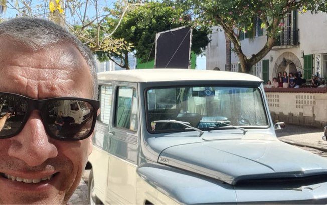 O interesse pelo carro antigo rendeu ao homem uma foto com o elenco do filme.Reprodução/X Já pensou em ter uma