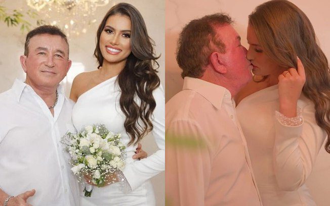 Casamento do Amado BatistaReprodução/Instagram A Miss Mato Grosso 2024, Calita Franciele Miranda, de 23 anos, e o cantor Amado Batista,