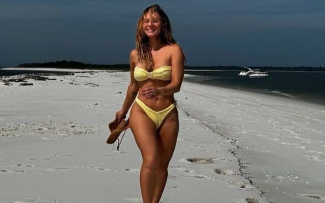 Paolla Oliveira de biquíni amareloReprodução Instagram – 23.4.2025 Vista como a alcoolista Heleninha Roitman no remake de “Vale Tudo”, Paolla Oliveira usou