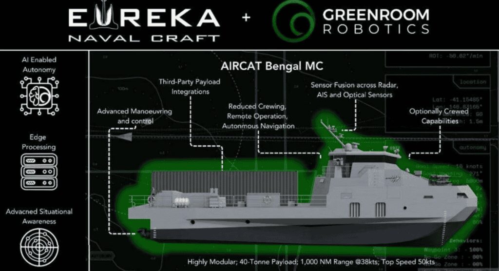 A empresa de defesa estadunidense Eureka Naval Craft e a especialista australiana em autonomia marítima Greenroom Robotics revelaram detalhes do