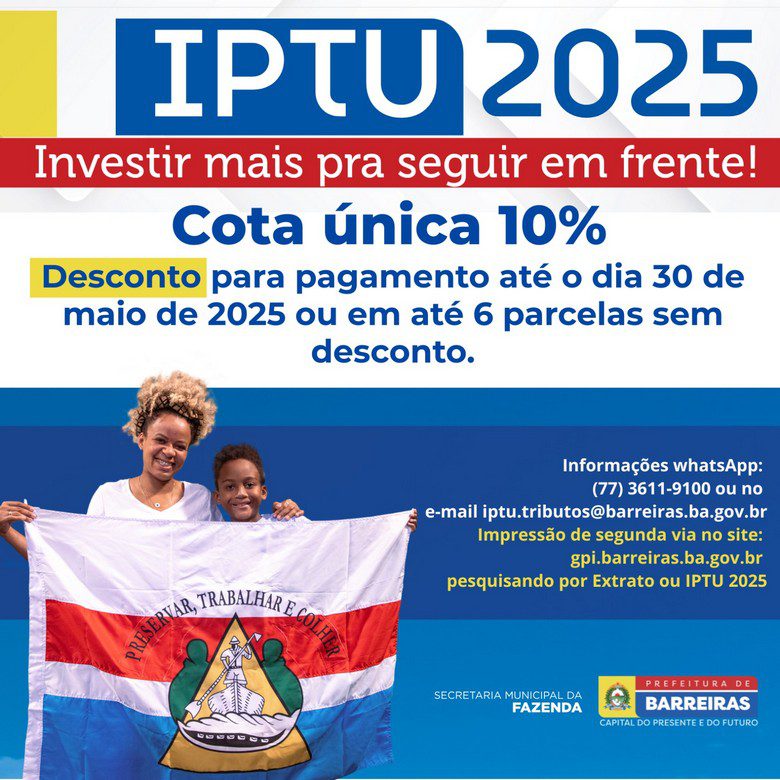 “Investir mais para seguir em frente”. Com esse lema, a Prefeitura de Barreiras deu início à campanha do IPTU 2025,