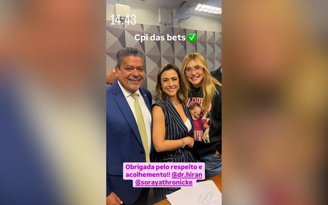 Virgínia Fonseca posa com membros da CPI das BETsInstagram/@virginia Após prestar depoimento na CPI das Bets, nesta terça-feira (13), a