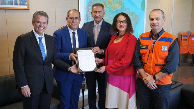 Ministro Waldez Góes entregou o empenho ao prefeito Mano Medeiros, acompanhado dos ministros pernambucanos Luciana Santos e André de Paula