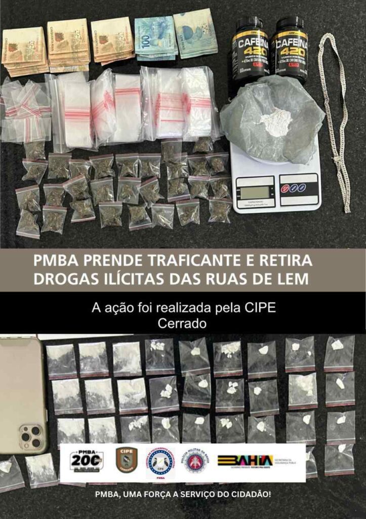 CIPE CERRADO PRENDE TRAFICANTE E RETIRA DROGAS ILÍCITAS DAS RUAS DE LEM