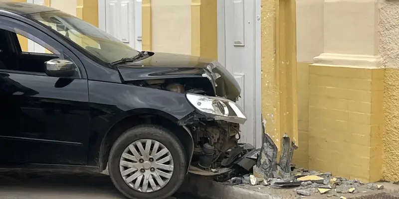 Gol bate contra poste após ser atingido por táxi na Rua Silva Jardim