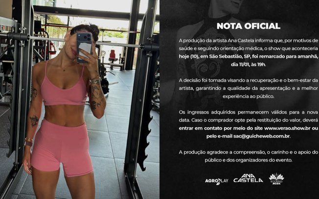 Ana Castela suspendeu showReprodução/ Instagram Ana Castela, de 21 anos, não se apresentou em São Sebastião, litoral paulista, neste sábado (10),