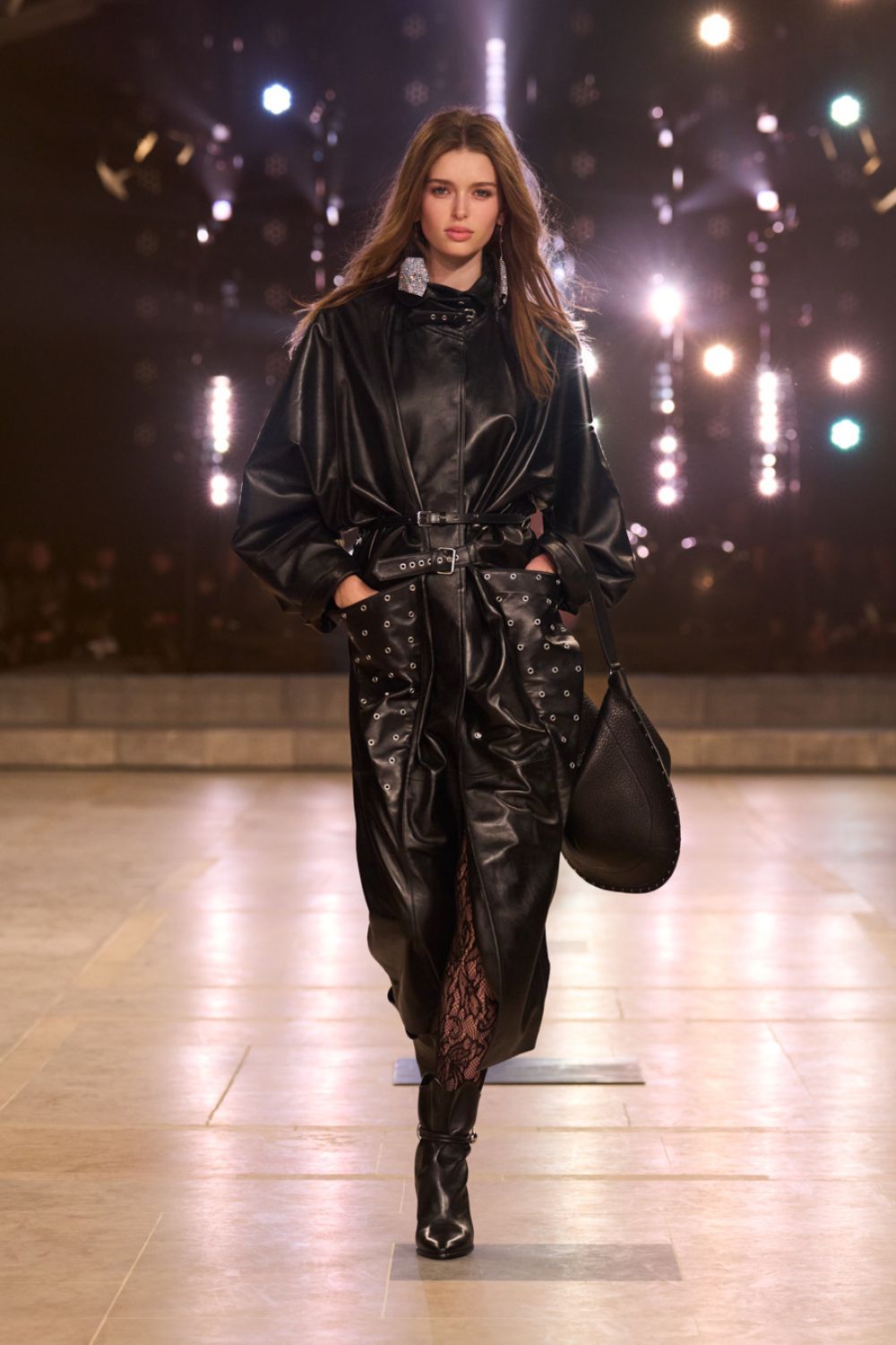 Que as batas e camisas de espírito bohemian chic não nos enganem: a alma de Isabel Marant é rocker. E qual voz melhor do que a da roqueira Karen O, vocalista da banda Yeah Yeah Yeahs, para embalar pela passarela os looks de couro preto com ilhoses prateados, usados sobre meia-calça rendada em motivo floral? Arrematando o visual que insinua a década de 1980 estavam as famosas botas da estilista (também vistas no desfile com calças jeans, usadas por dentro do calçado).