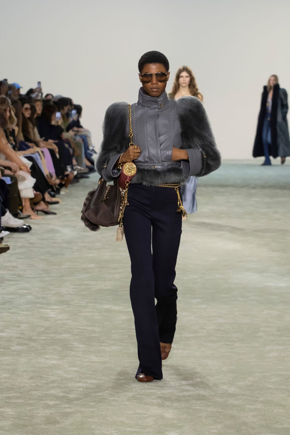 A PEÇA-CHAVE: é o trench-coat, peça que representa bem a fusão de camadas da Chloé mencionada no texto da estilista. Ele é capaz de atravessar o tempo, se mantendo relevante para mulheres das mais diferentes trajetórias de vida. Sob o olhar de Chemena, o trench surge em um couro finíssimo (cujo conforto deu para assimilar só de ver o movimento da peça, acompanhando o caminhar das modelos). E, se você lê minha coluna A Mulher Sucesso desde a primeira edição impressa, já sabe: para mim, é para sempre um dos essenciais do guarda-roupa.