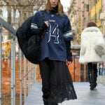 Ela usa maxicasaco de dia e vestido curtíssimo à noite. A mulher do inverno 2025 da italiana Dolce & Gabbana vai do streetwear ao glamour no tempo de uma curta jornada – tem proposta mais jovem do que essa?