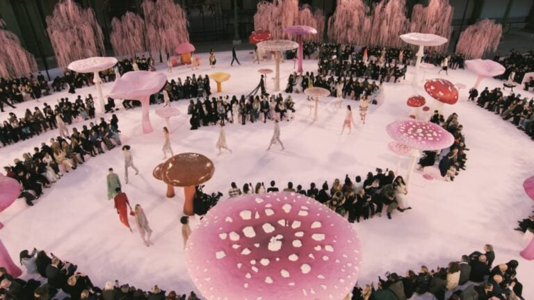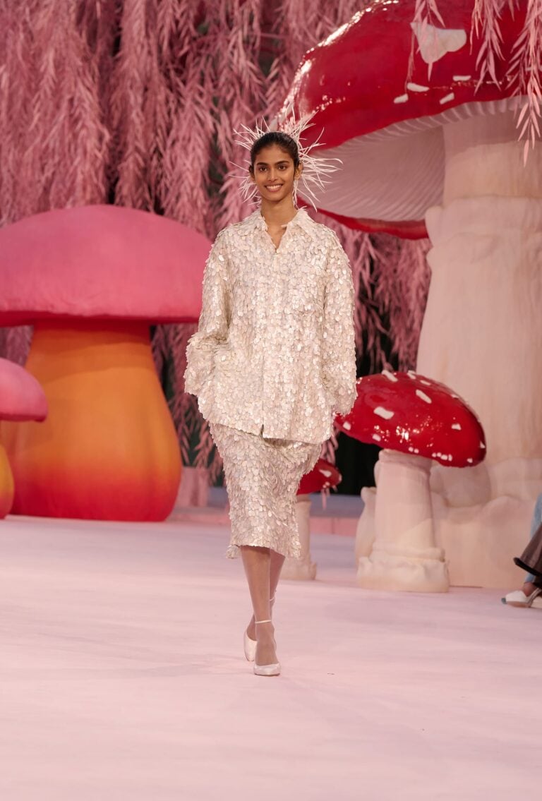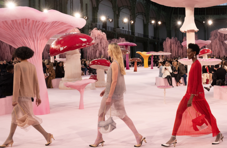 Cogumelos gigantes na passarela, Fernanda Torres ao lado de Tilda Swinton e Nicole Kidman, um remix surpreendente de rock britânico e muito cor-de-rosa tingindo o piso do imponente Grand Palais.
