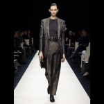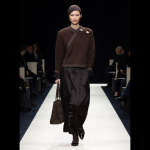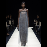 O brilho discreto ganha a companhia da fluidez. A transparência revela com discrição. Os looks delicados vão com botas sem salto. Essa equalização de diferentes pesos e medidas faz tudo parecer effortless. E se tem algo que Mr. Armani domina é o conceito de elegância sem esforço. “Bolsas macias e sapatos baixos, projetados para passos leves, mas seguros, comunicando um senso inato de confiança”, diz a grife. Em resumo: Armani em ótima forma!
