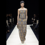Entre os terninhos indefectíveis da grife, que tanto sucesso fizeram a partir dos anos 1980, há a inserção de abotoamentos e modelagens que fazem referência às vestimentas orientais, como o quimono e a túnica, ou mesmo as calças fluidas, mais justas no tornozelo, e os acinturados que lembram o obi. Tudo muito sutil e elegante.