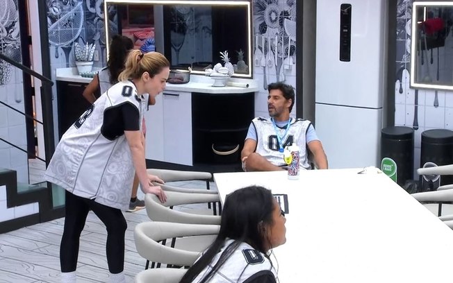 Após sobrar um trio, pas participantes pegaram as caixas que escolheram, ficaram atrás do guarda corpo e trocaram as caixas entre si. Quem ficasse com a caixa da balança de bioimpedância ganhava a prova.