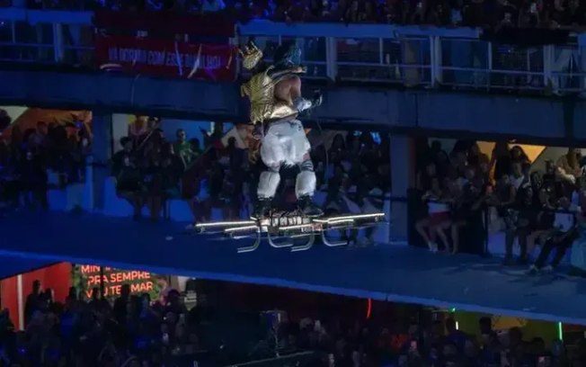 A apresentação da escola de Oswaldo Cruz, bairro da zona norte carioca, levava um homem do grupo cênico para um sobrevoo de 40 segundos sobre um tripé alegórico e os outros bailarinos. Quatro apresentações usaram o “superdrone” ao longo do desfile no sambódromo.
