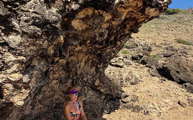Para curtir o litoral, a loira elegeu um biquíni prateado, que combinou com um óculos espelhado, dando um ar futurista e descolado ao look. Em outro momento, a artista surgiu usando um conjunto em um tom de terracota, que destacou o bronze e seu abdômen sarado.