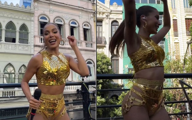 A cantora Anitta comandou neste sábado (8) um dos blocos mais esperados do Carnaval do Rio de Janeiro. A cantora arrastou uma multidão no Centro da cidade e surpreendeu com um figurino inspirado na ginasta Rebeca Andrade, usando um maiô dourado, medalha de ouro e bandeira do Brasil.