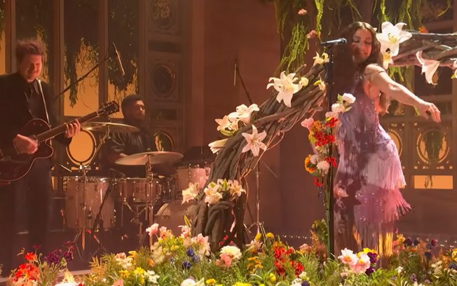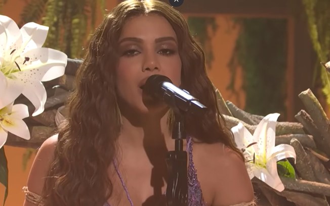 A SNL também já disponibilizou a performance de “Várias Quejas”, onde Anitta explora uma estética latina romântica. Cantando em espanhol e rodeada por flores, a artista surgiu com um visual sofisticado: um vestido em tom lavanda, composto por franjas, bordados e brilho, que acompanhava o movimento da apresentação. O momento destacou uma faceta mais lírica e suave da cantora, contrastando com o ritmo de seu single principal.