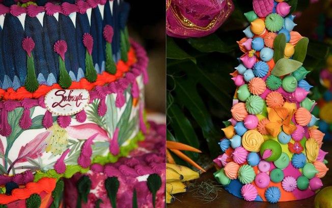 O que chamou a atenção de todos foi o bolo de oito andares e cheio de detalhes vibrantes e coloridos. Os doces, todos coloridos, completaram o banquete super badalado do Rio de Janeiro.