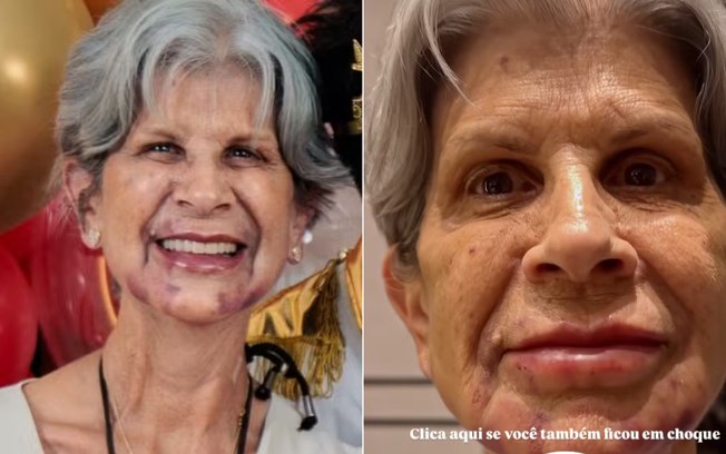 Em outro vídeo, o ator voltou a fazer piada com os efeitos colaterais do procedimento estético. Ele mostrou as marcas roxas e inchaços espalhados pelo rosto de Ana Maria, comuns em interferências do tipo.