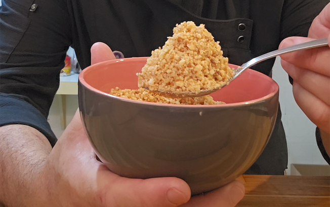 Tem cara de areia, mas promete ser uma das farofas doces mais gostosas que você já provou
