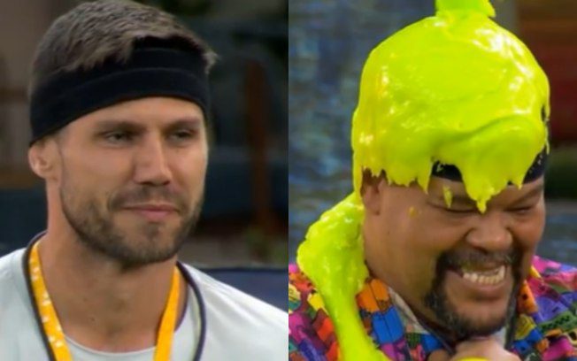 “Toma uma melequinha na cabeça”, disse Jonas, antes de Babu levar a gosma por não acertar. “Você não consegue fazer duas frases fazerem sentido… Fala sério”, riu Babu.