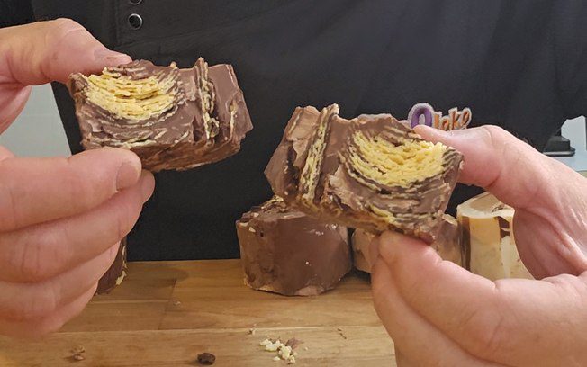Como meu perfil nas redes sociais traz sempre uma ótima curiosidade, não me limitei a misturar batatas chips com chocolate ao leite e me arrisquei a fazer com 5 chocolates diferentes.