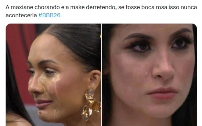 A cena rapidamente repercutiu na web, com internautas reparando que a maquiagem utilizada por Maxiane não segurou com o choro intenso da sister.