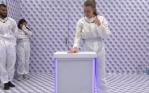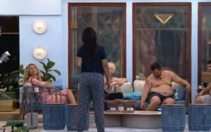 “Atenção, preste bem atenção. Você está imune e deve indicar alguém ao Paredão. Vá até a despensa, pegue a pulseira vermelha, reúna todas na sala e comunique a sua decisão”, disse a voz.