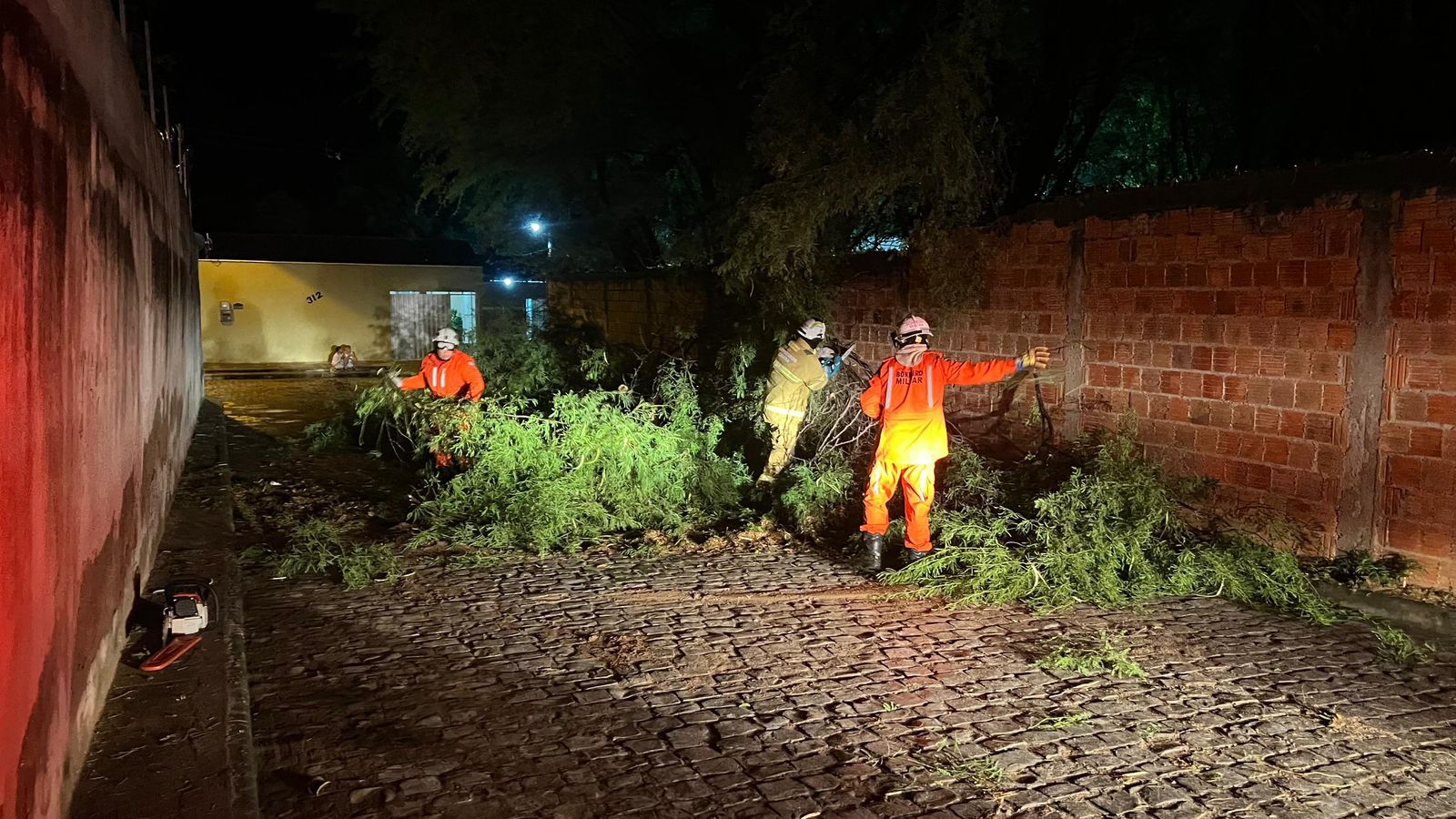 Equipes do 20º BBM atuaram, na noite deste sábado (8), na remoção de uma árvore que caiu e bloqueou a Travessa Guarani, na Beira Rio, em Bom Jesus da Lapa.