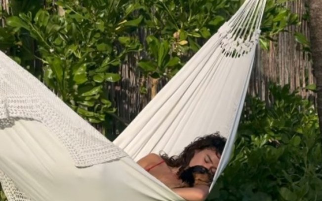 “Férias. Saudade danada desse paraíso”, escreveu ela na legenda da publicação. Nos registros, a artista aparece curtindo as águas do local, procurando conchas pelo mar e acompanhada de seus bichinhos.