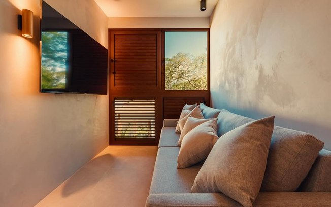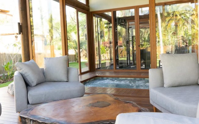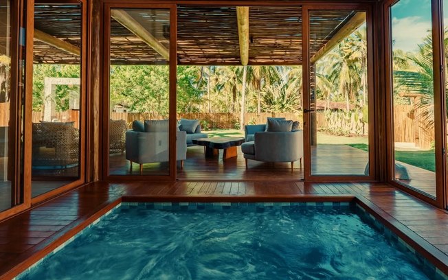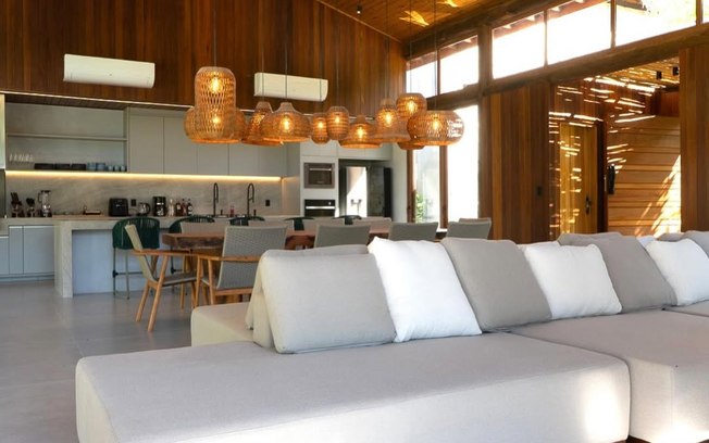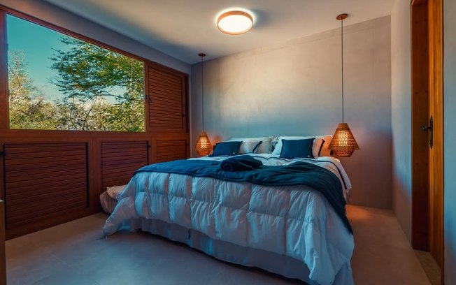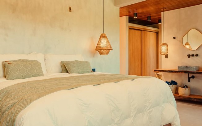 Assinada pelo arquiteto Flavio Moura, a mansão conta com oito suítes e capacidade para até 23 hóspedes. A distribuição inclui duas suítes com cama king e solteiro auxiliar, quatro suítes com cama queen e solteiro auxiliar e duas suítes equipadas apenas com camas de solteiro.