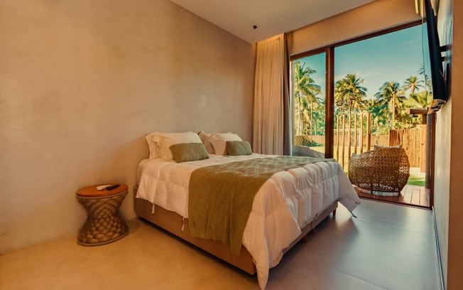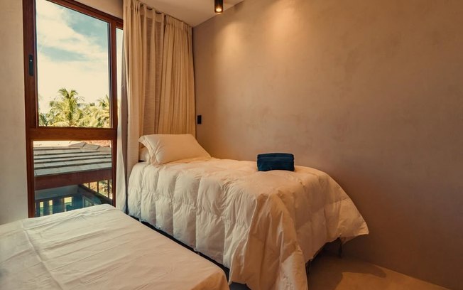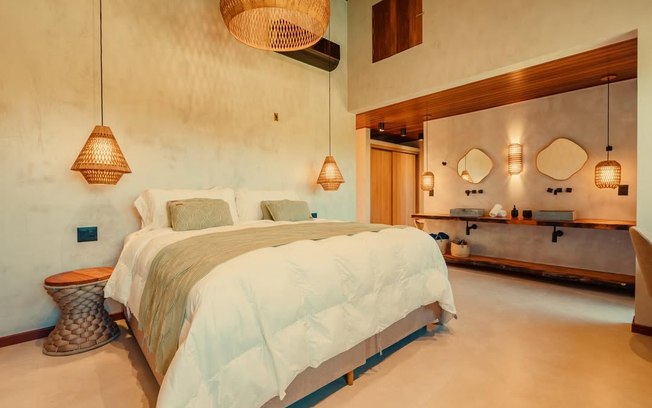 Assinada pelo arquiteto Flavio Moura, a mansão conta com oito suítes e capacidade para até 23 hóspedes. A distribuição inclui duas suítes com cama king e solteiro auxiliar, quatro suítes com cama queen e solteiro auxiliar e duas suítes equipadas apenas com camas de solteiro.