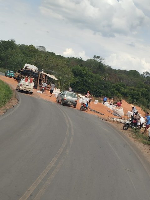De acordo com informações preliminares, um caminhão carregado de sorgo tombou nas proximidades do distrito de Sítio Grande. Até o momento, não há dados confirmados sobre o estado de saúde do motorista nem sobre as circunstâncias que causaram o acidente.