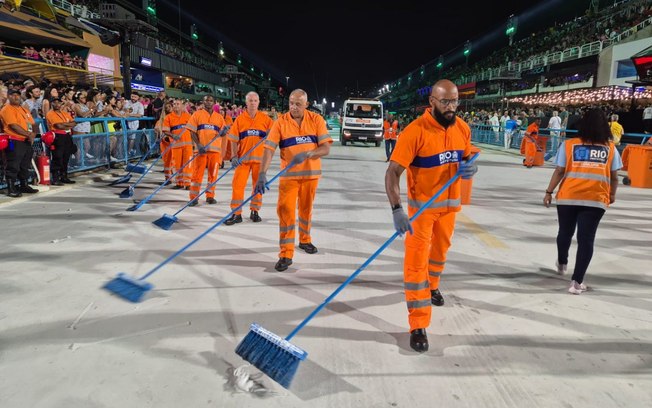Garis da Comlurb atuam na limpeza do Sambódromo entre desfilesDivulgação / Prefeitura do Rio