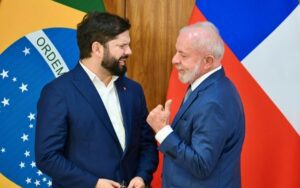 Os presidentes Lula e Gabriel Boric, do Chile, em BrasíliaEVARISTO SA EVARISTO SA O presidente Luiz Inácio Lula da Silva