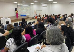 Nesta terça-feira (29), o auditório da Escola Municipal Mirandolina Ribeiro de Macedo recebeu o 1º Encontro de Formação Continuada dos
