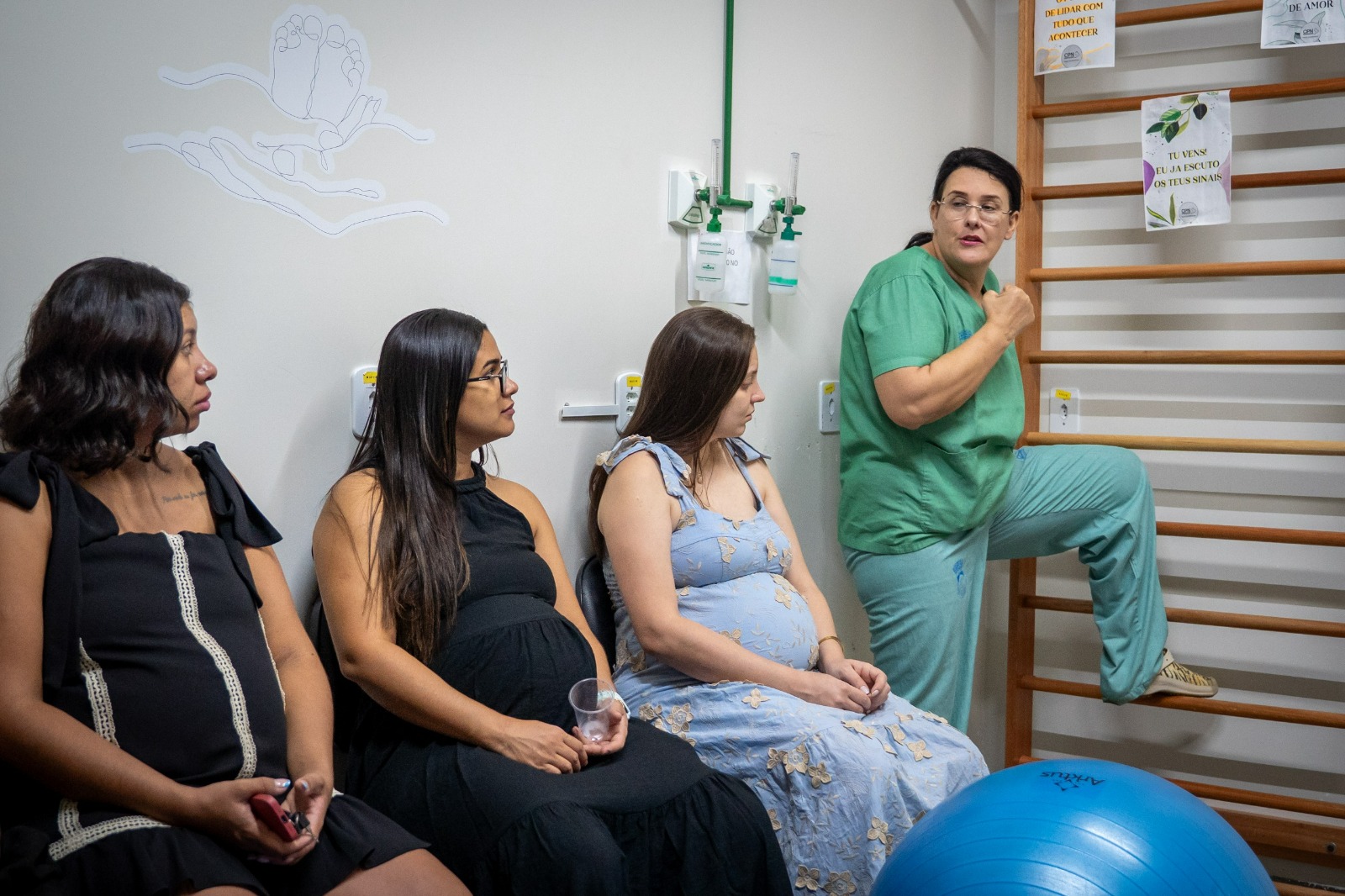 A Secretaria Municipal de Saúde, por meio do Centro de Parto Normal (CPN) Vilma Ramos Guerra, promoveu nesta quarta-feira (11/02) mais uma edição da Roda de Gestantes. O encontro reuniu cerca de 20 pessoas do município, independentemente de realizarem o pré-natal na rede pública ou privada. Com o tema Medidas não farmacológicas de alívio da dor, a palestra apresentou às futuras mamães técnicas naturais que auxiliam no conforto durante o trabalho de parto.