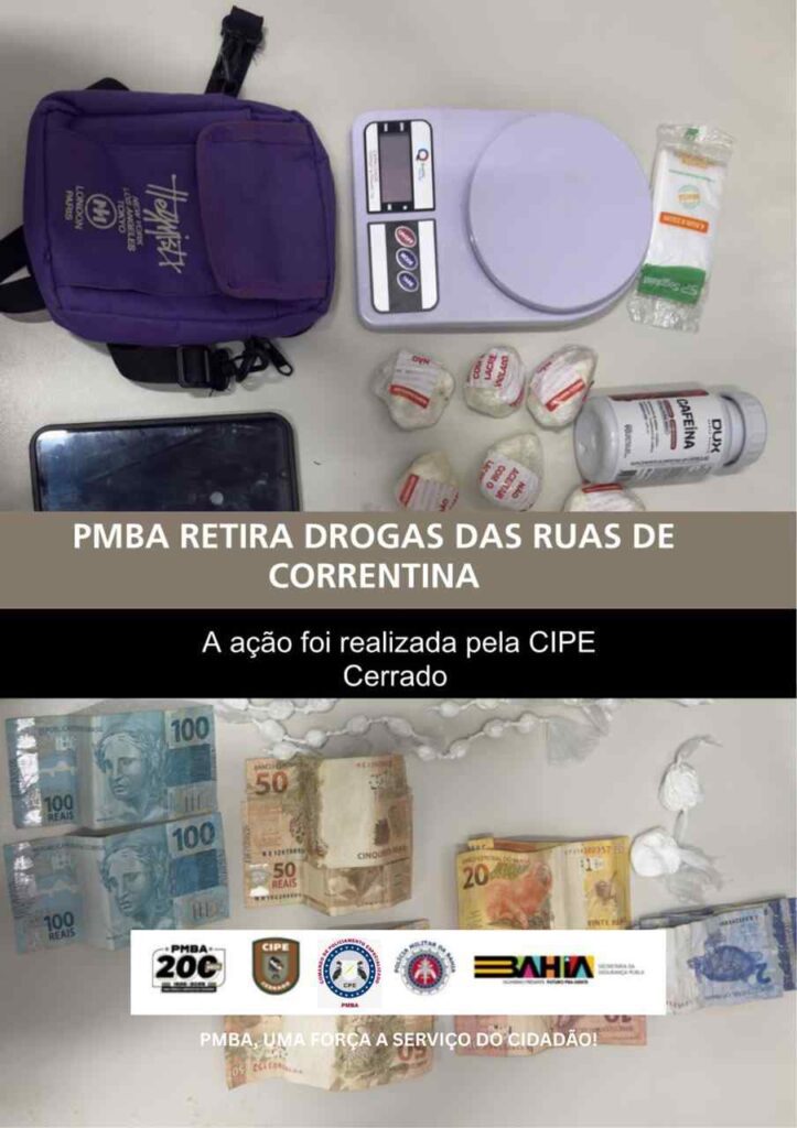 CIPE CERRADO PRENDE TRAFICANTE E RETIRA DROGAS DAS RUAS DE CORRENTINA