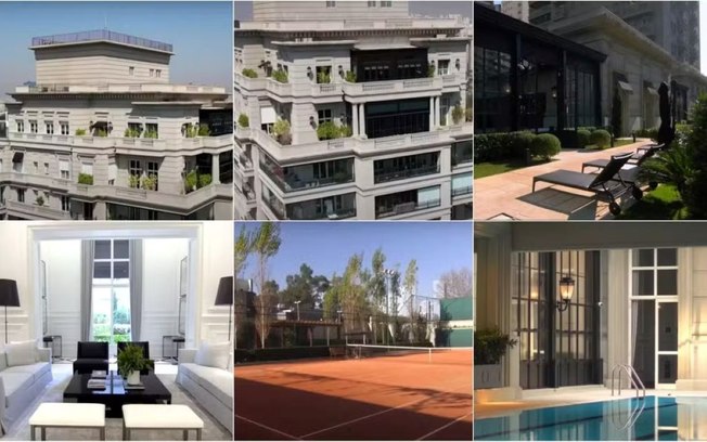 A propriedade conta com 1.413 metros quadrados de área privativa distribuída em dois pavimentos e quatro suítes. O valor mensal do condomínio é de R$ 36 mil e o imóvel dispõe de 20 vagas de garagem privativas.
