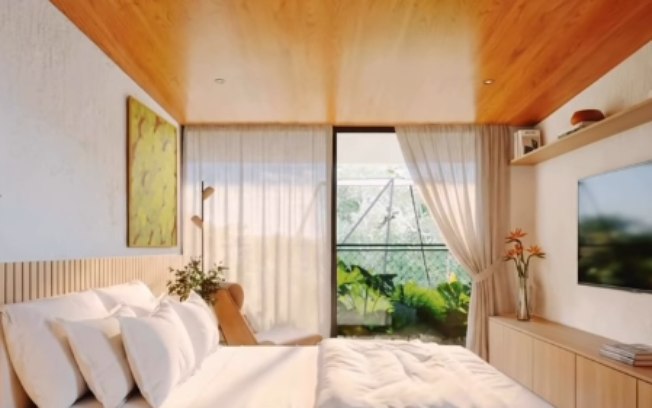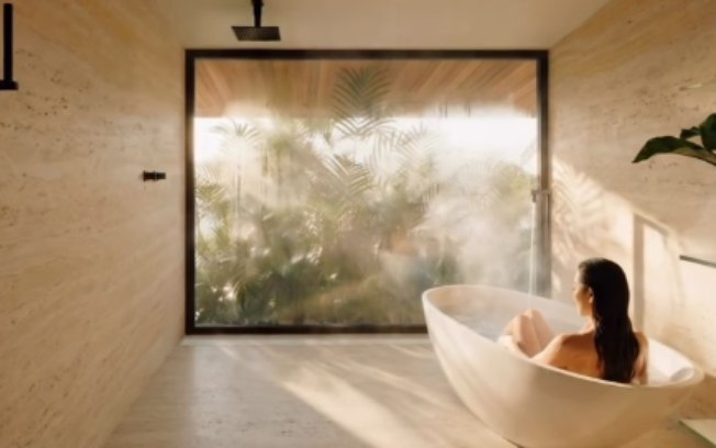 O ponto alto do quarto principal é uma banheira com vista panorâmica para a mata, que permite momentos de relaxamento em total sintonia com o verde. De acordo com a artista, a casa representa a realização de um sonho de infância focado no conforto de sua família. Confira as imagens do projeto da mansão: