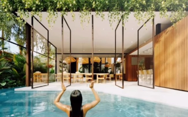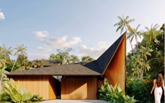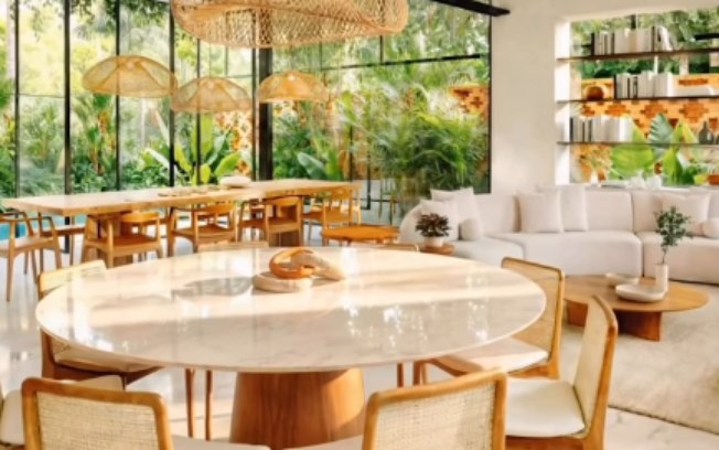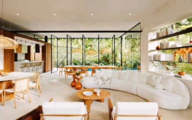 O projeto, dos arquitetos Vitor Pessoa e Laurent Troost, destaca-se por uma estrutura moderna que privilegia paredes de vidro, garantindo que a floresta “entre” na casa através de iluminação natural e ventilação cruzada em todos os cômodos. A fachada é inspirada em uma maloca (habitação comunitária indígena). Já a decoração das salas é em estilo clean, com móveis brancos e em tom de madeira.