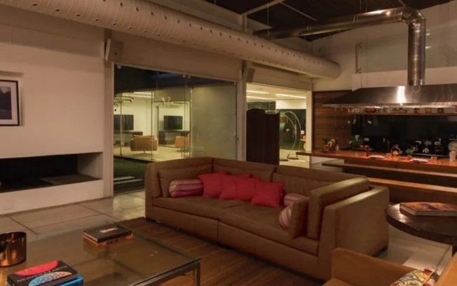 A casa tem grandes portas e janelas de vidro que deixam o interior dialogar com o restante do imóvel e da paisagem, enquanto o pé direito duplo e o conceito aberto unificam a sala de estar e cozinha. Em uma recente entrevista à Vogue, Angélica contou que a casa foi pensada para ser o centro das reuniões familiares.