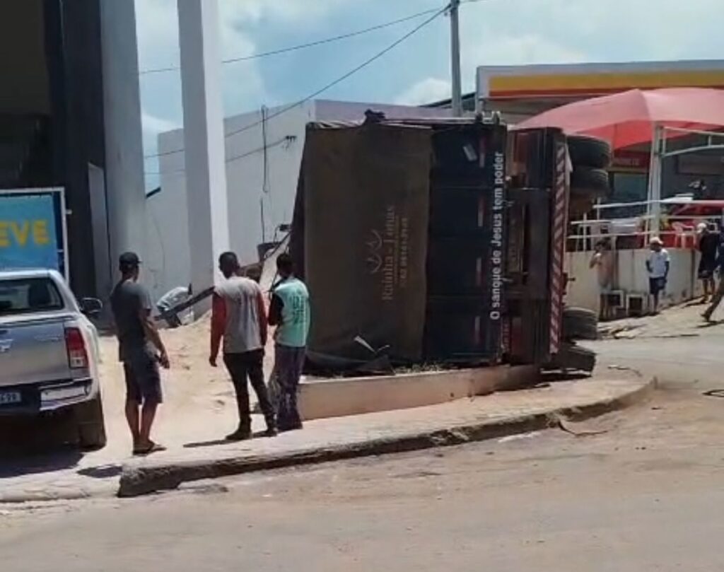 Na manhã desta segunda-feira, 2 de fevereiro de 2026, uma carreta tombou na área urbana da cidade de Correntina, no oeste da Bahia.