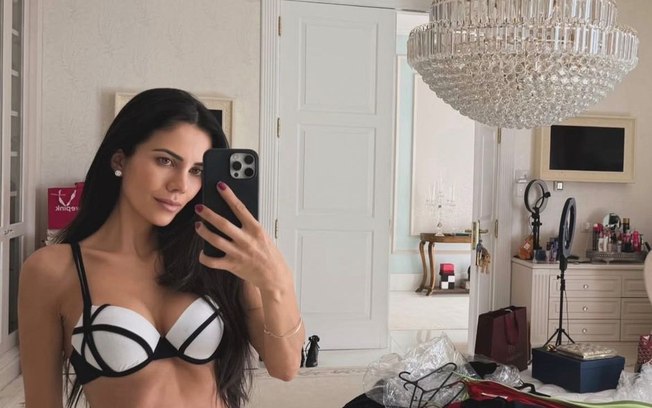 A apresentadora Daniela Albuquerque voltou a chamar atenção nas redes sociais ao compartilhar, no último domingo (22), um registro em que aparece de biquíni. Aos 43 anos, a comunicadora posou no próprio closet usando um modelo preto e branco e resumiu o momento na legenda: “Ativar a vitamina D”.