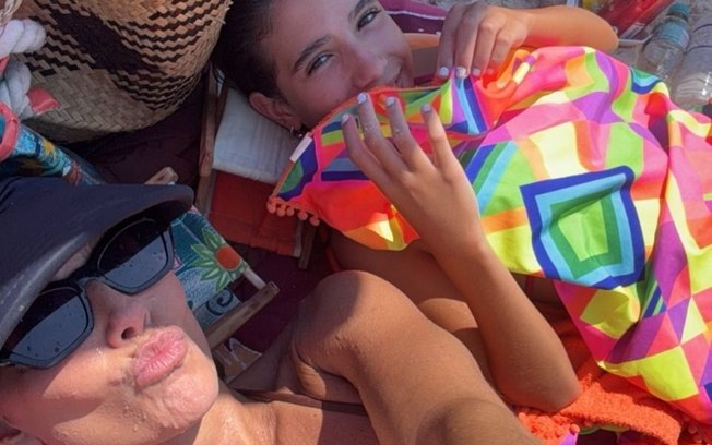 Na primeira imagem do carrossel de fotos, a artista aparece deitada em uma canga, vestindo um biquíni branco, relaxando à beira mar. Em outros registros, Deborah surge descontraída ao lado de sua filha, Maria Flor, de 10 anos.
